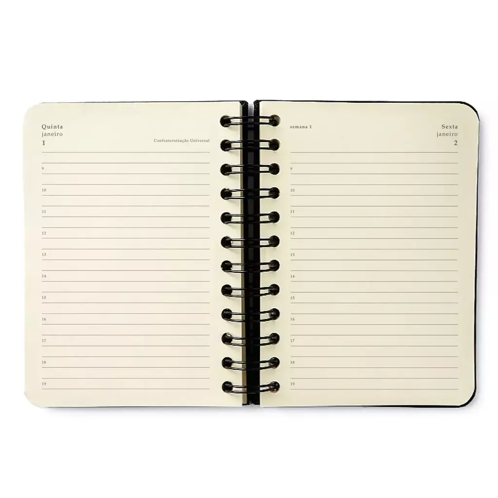 A Agenda Planner Wire-o 2026 Diária 11,5 x 16cm é para quem gosta de ter o dia em suas mãos com controle de horas, com um dia por página. O formato wire-o traz praticidade e uma maior funcionalidade e com este formato pocket, você vai poder levá-la para onde quiser. Capa com aplicação de hot stamping dourado trazendo sofisticação e elegância.
