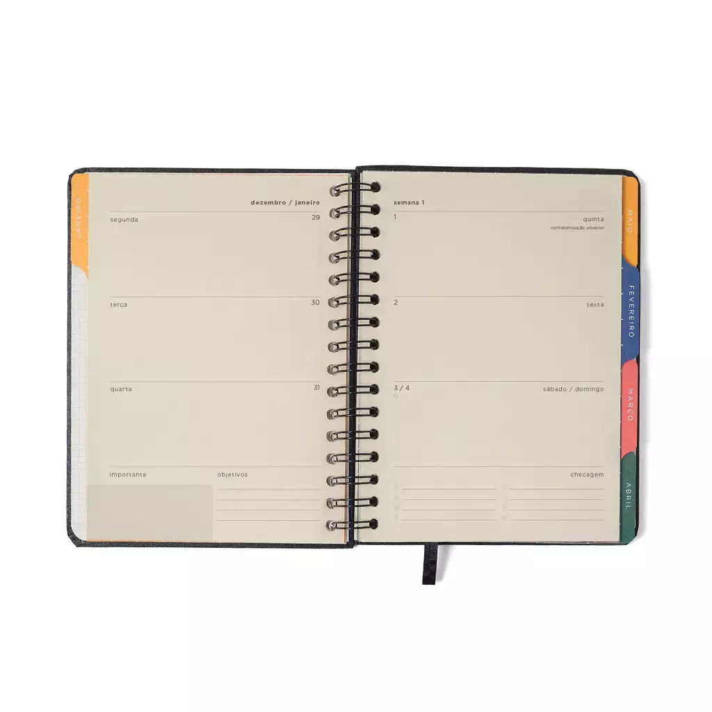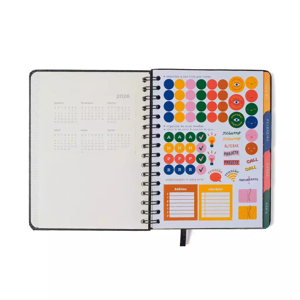 A Agenda Planner Argolada 2026 Semanal Notas A5 é perfeita para quem gosta de uma boa organização. A dupla semanal conta com um design limpo e funcional e vem com tópicos para auxiliar ainda mais a sua semana: área destacada para “importante”, pautas para os objetivos e lista de checagem. Capa com aplicação de hot stamping dourado trazendo sofisticação e elegância.